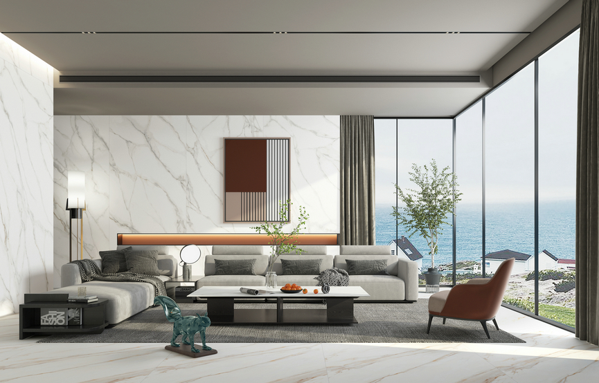 表面同時擁有著白色的優雅,與金色特有的高貴奢華,潔白與純凈之間泛起金色絲線,營造出時尚簡約的氣質,引領空間設計走向新黃金時代。